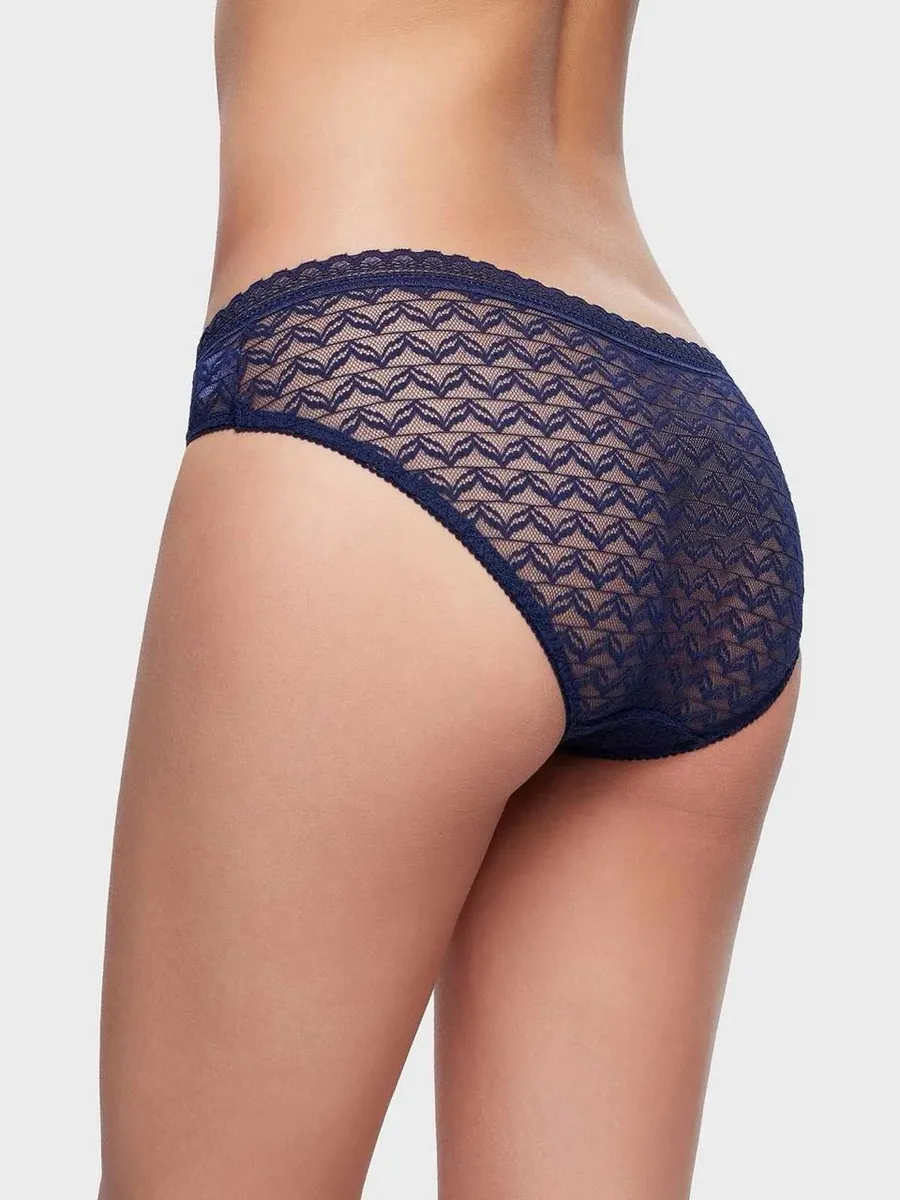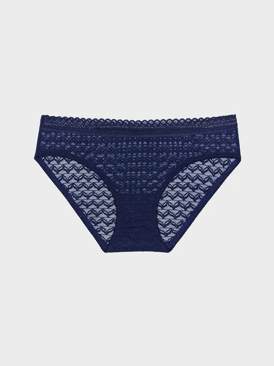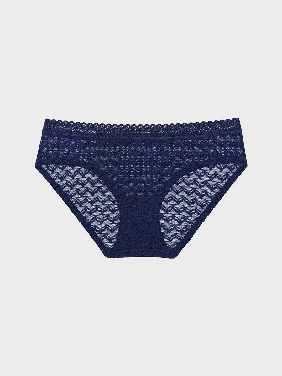 Трусы женские Secret Crush представляют собой стильный и комфортный выбор для повседневной носки. Они выполнены в темно-синем цвете с геометрическим принтом и декорированы сеточкой, что придает им оригинальность и изысканность.