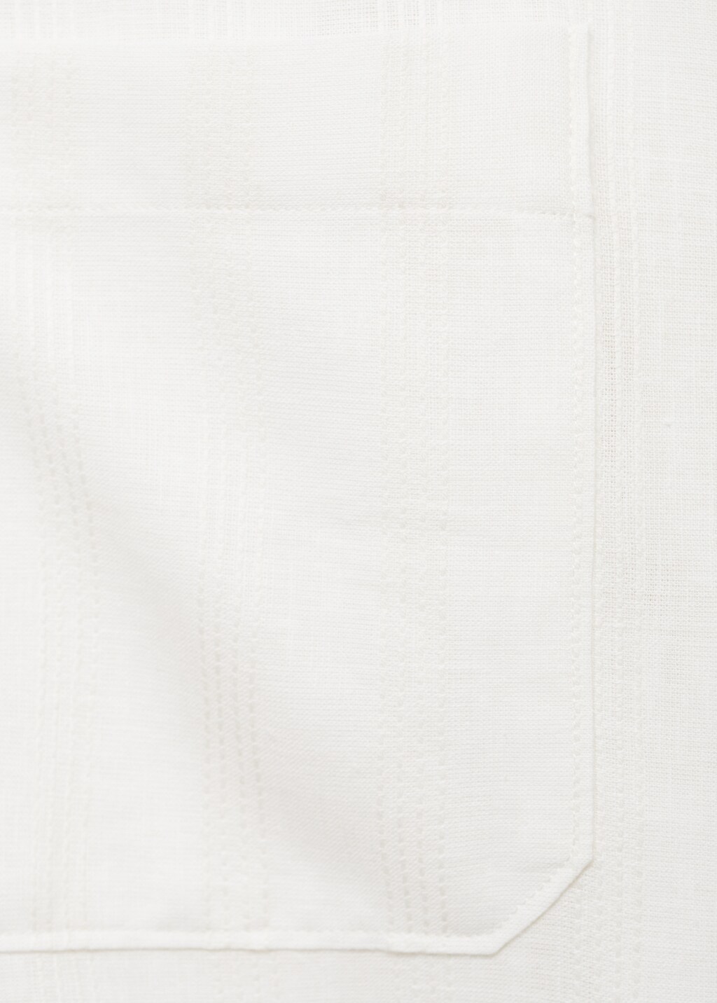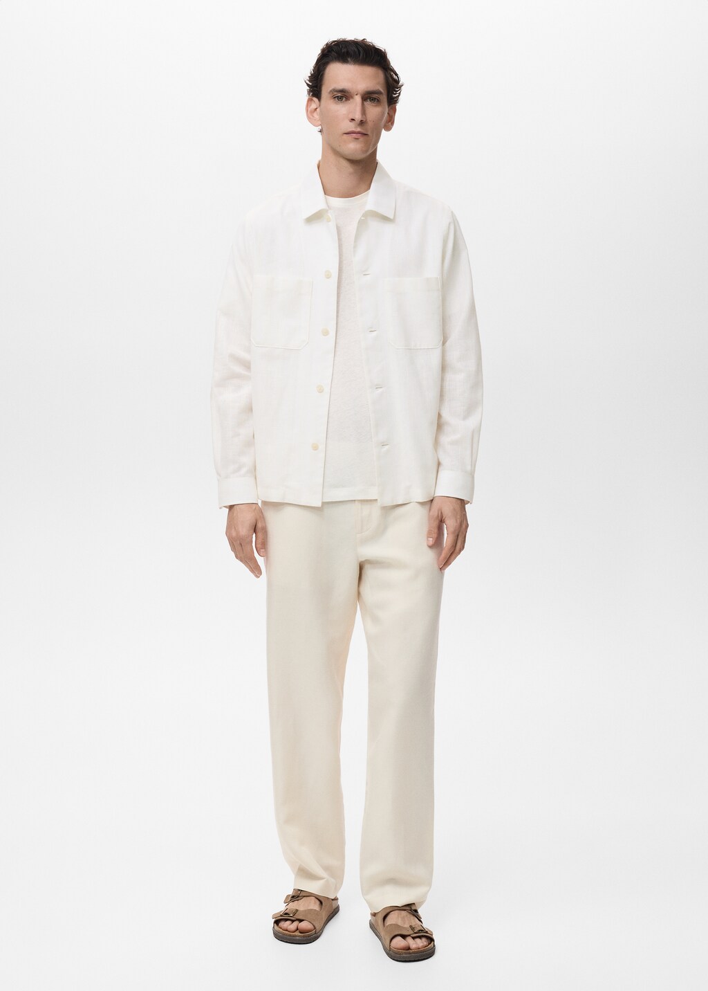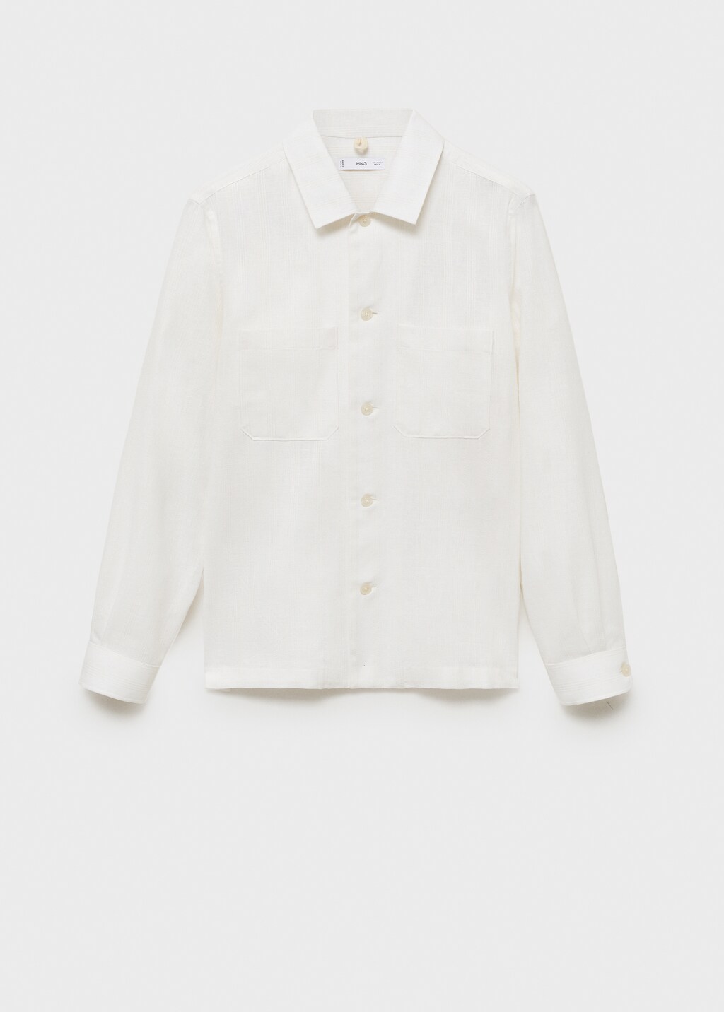 ткань из смеси льна и хлопка, обычный силуэт, рубашечный воротник, два накладных кармана на груди, передняя застежка на пуговицы, манжеты на пуговицах, на манжетах защипы, прямой низ, модель ростом 190 см носит размер m,, . длина спины: 72,0 cm