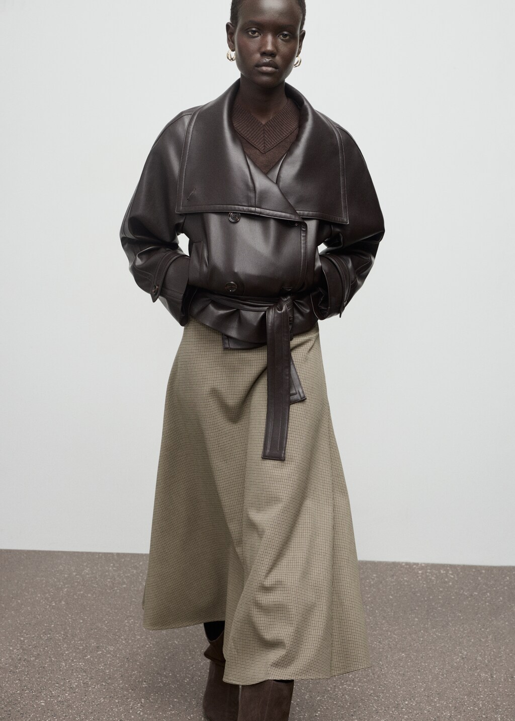 Выбирая юбку из смеси шерсти с узором "гусиная лапка" от MANGO, вы получаете стильное и качественное изделие, которое прослужит вам долгое время.