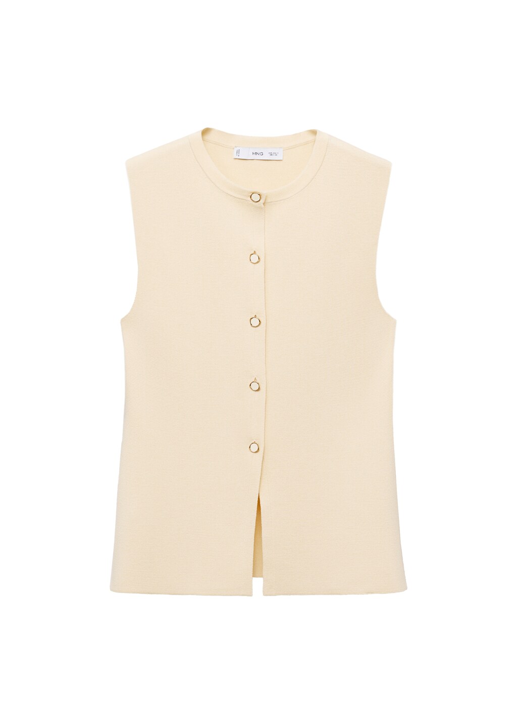 тонкий трикотаж, приталенный дизайн, круглый вырез, без рукавов, застежка на пуговицы спереди,, . длина спины: 57,0 cm