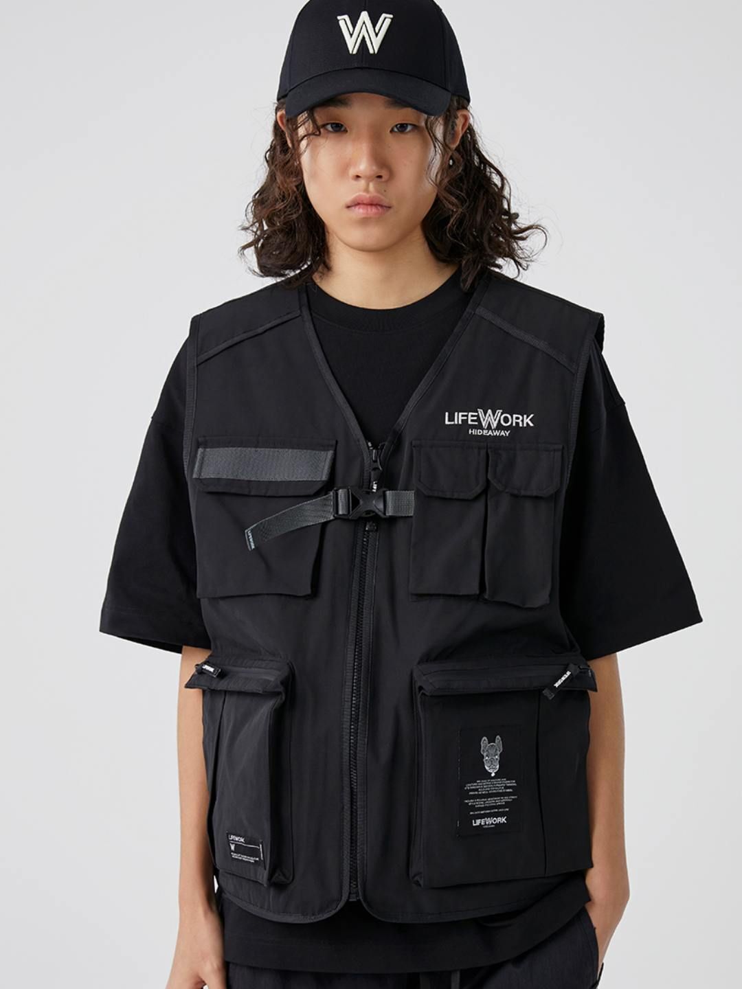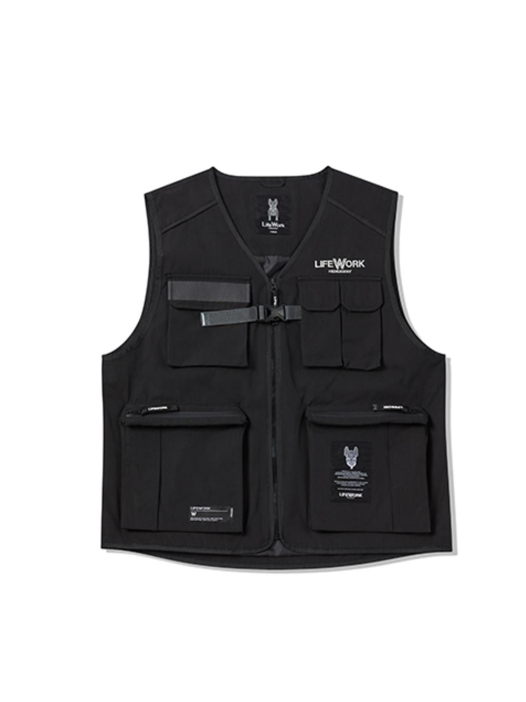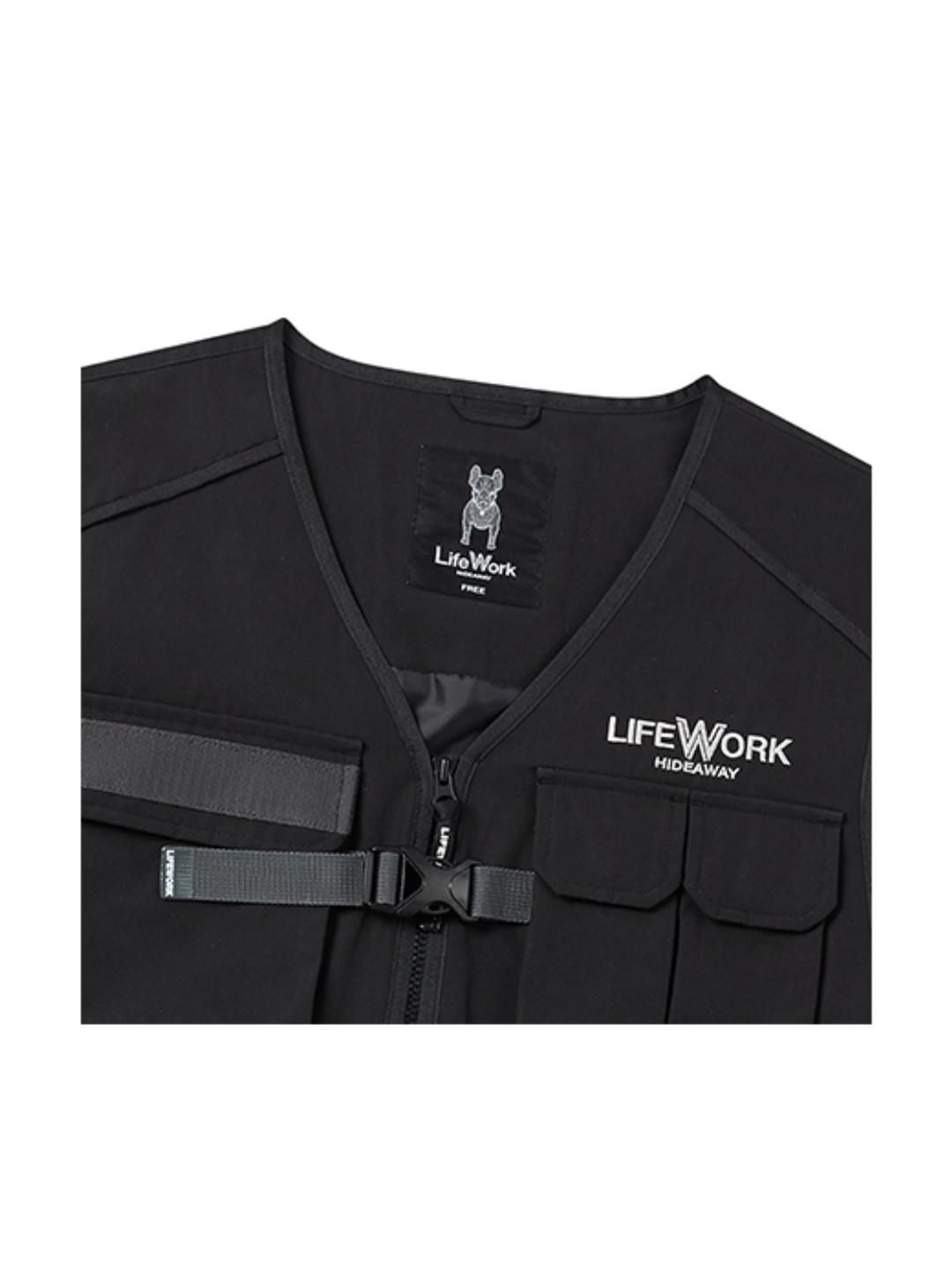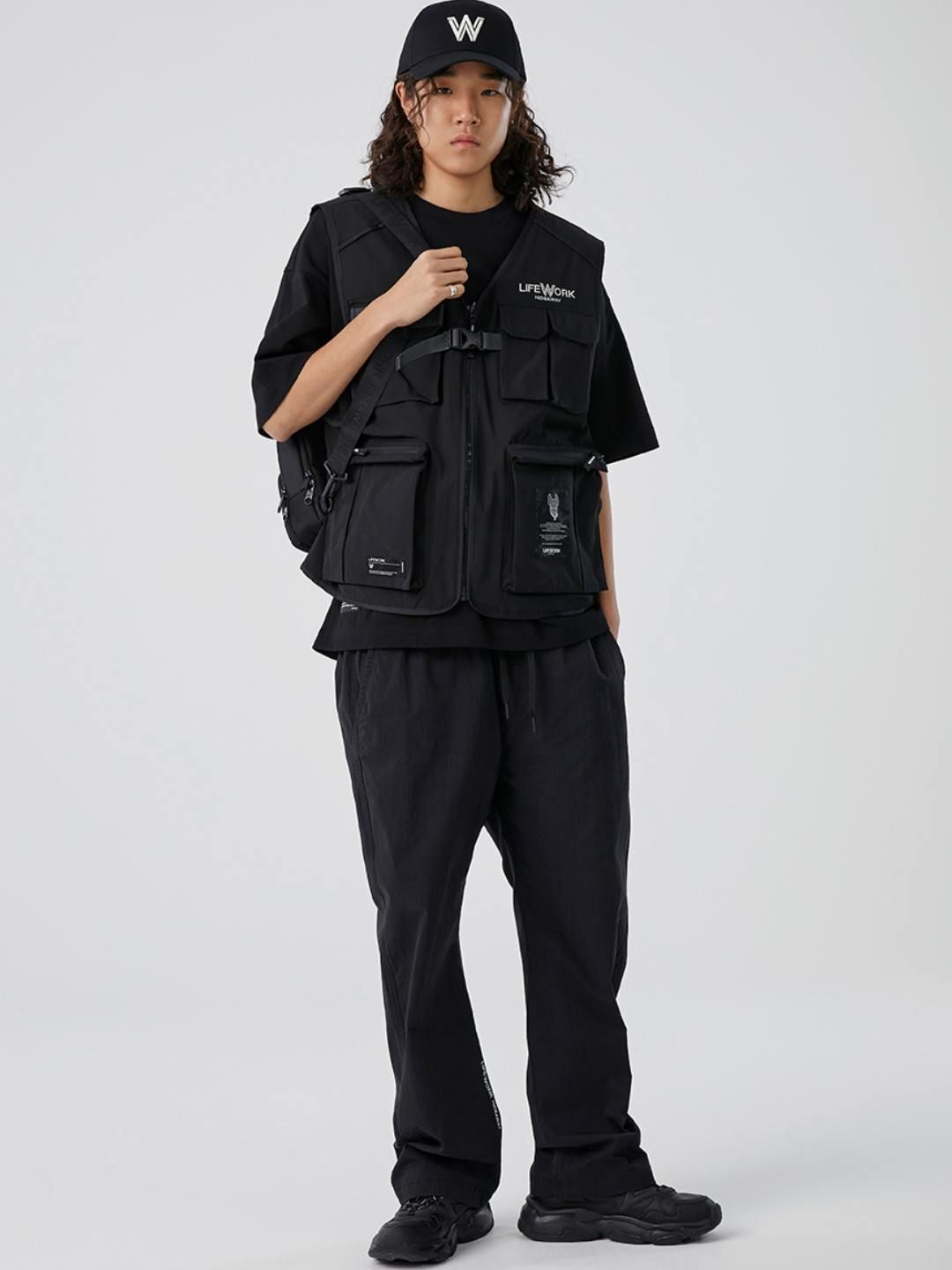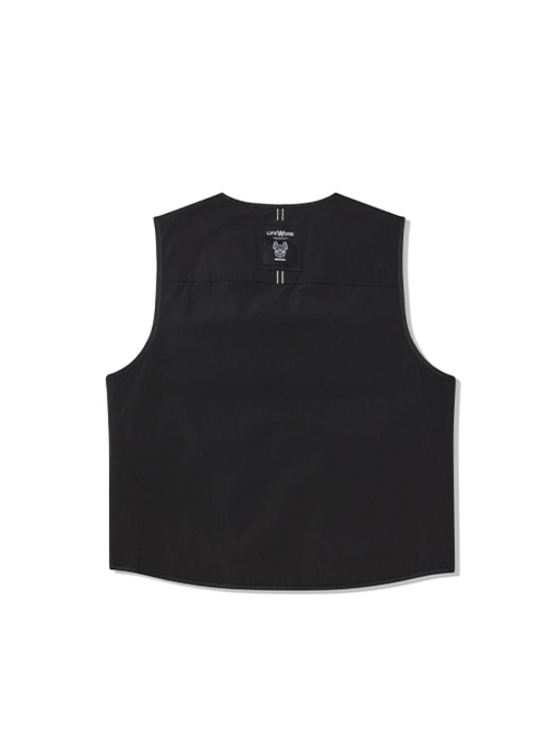 Жилет от LifeWork — лёгкая модель в оверсайз-фасоне из прочного полиэстера с хлопком. Универсальный чёрный цвет и свободный крой делают его идеальным для многослойных образов и повседневной носки. Подкладка из полиэстера добавляет комфорта и практичности.